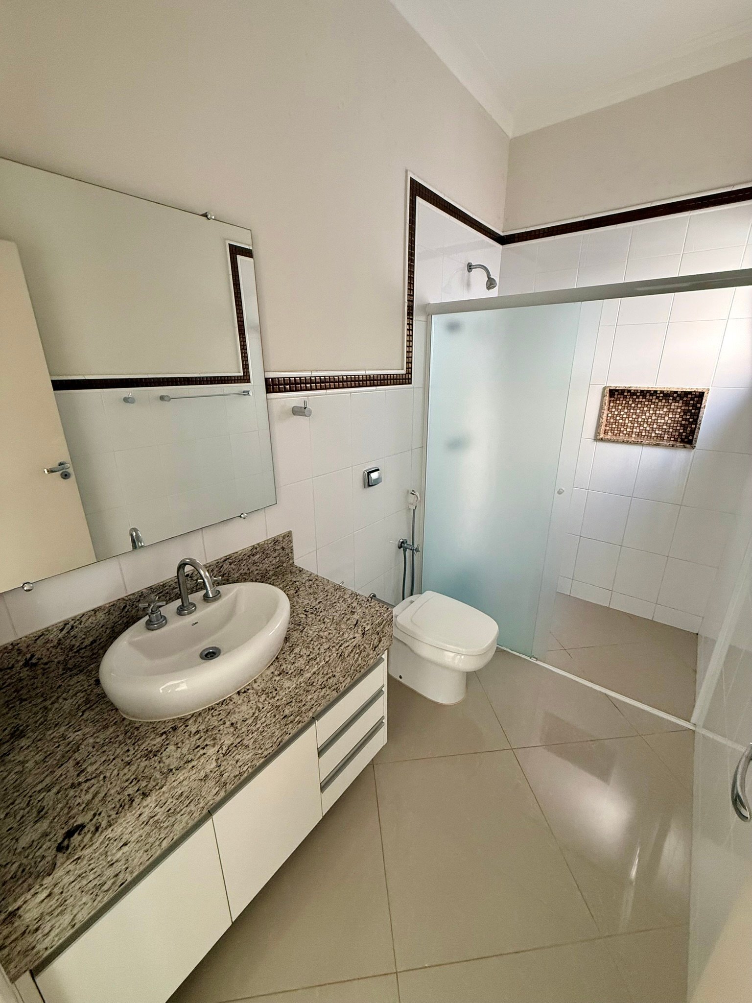 Com 180m² de construção em um terreno de 250m², o imóvel foi projetado para oferecer espaços amplos e bem distribuídos. São três dormitórios com armários planejados, além de uma suíte espaçosa que se destaca pela varanda privativa — um convite para momentos de descanso e contemplação.